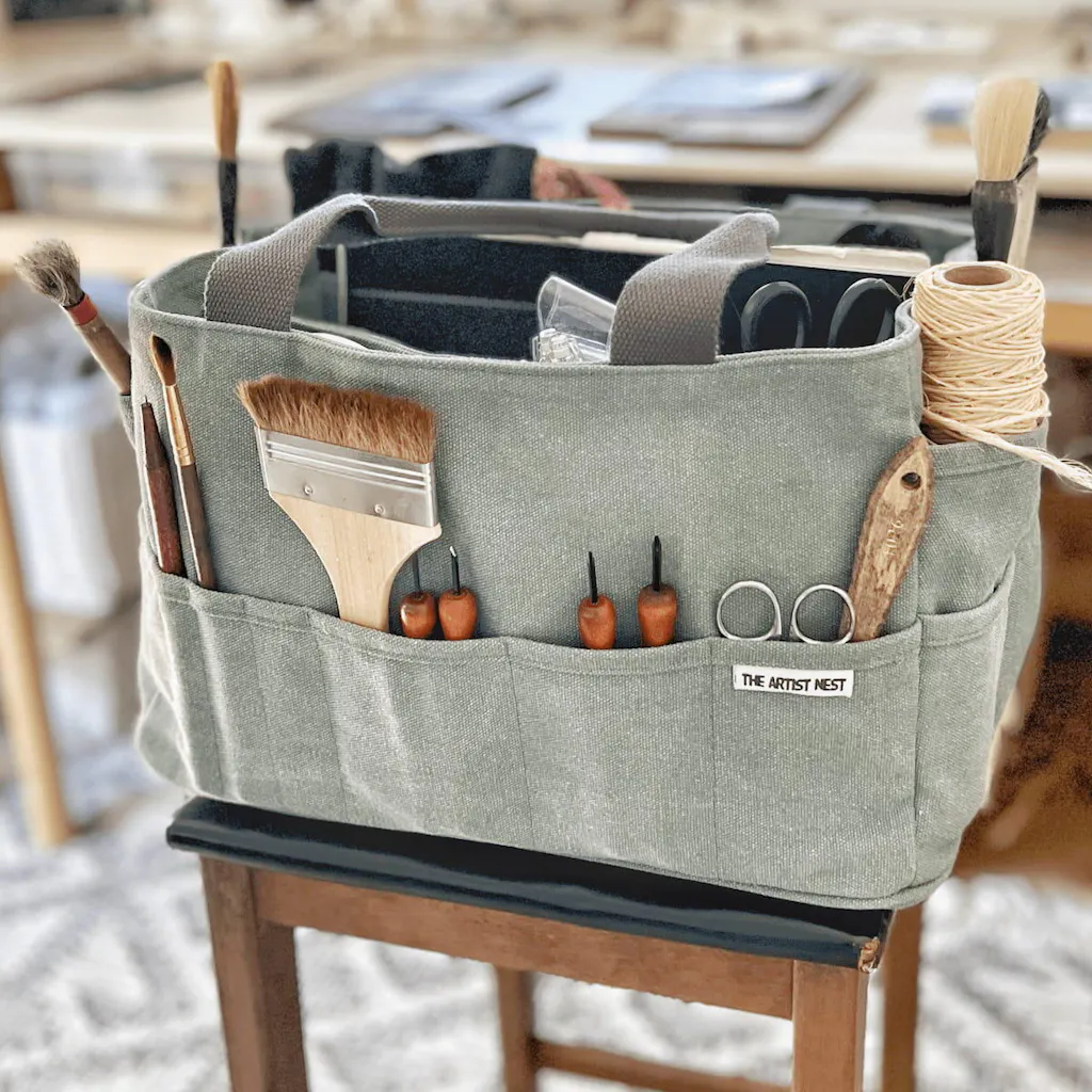 While designed for pottery, Eucalypt works brilliantly as a painting supply bag and artist tool bag.